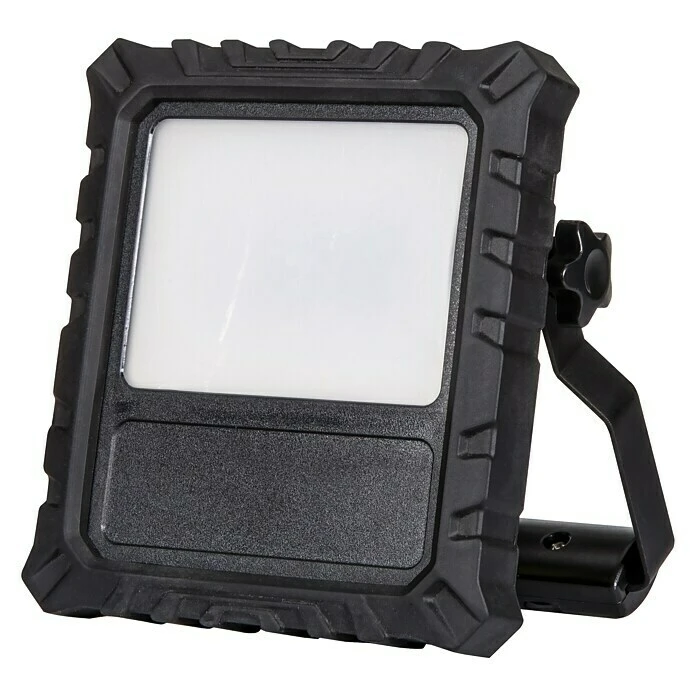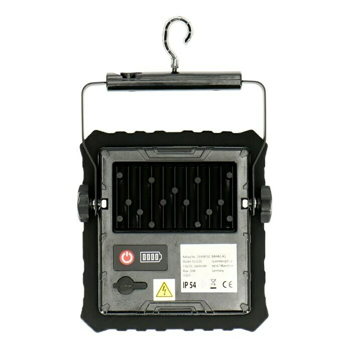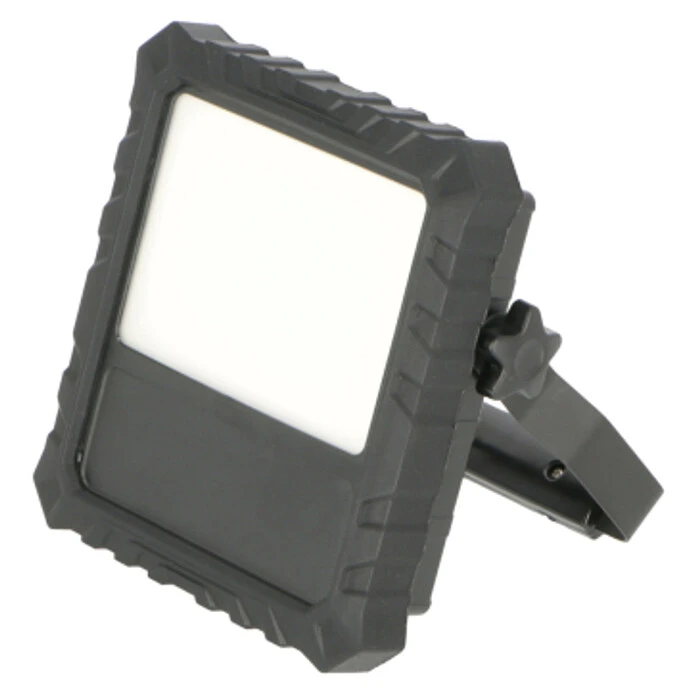 De mobiele led bouwlamp van Profi Depot is ideaal voor verlichting op bouwplaatsen en heeft IP44-bescherming. Deze lamp heeft een flexibel handvat en een haak en is gemaakt van plastic met een siliconen coating. De oplaadbare batterij kan worden opgeladen via de meegeleverde voedingskabel. De verlichting kan worden geregeld op 20, 50 en 100 % in 3 lichtniveaus. De LED-verlichting straalt tot 2.100 lumen uit in neutraal witte kleur.