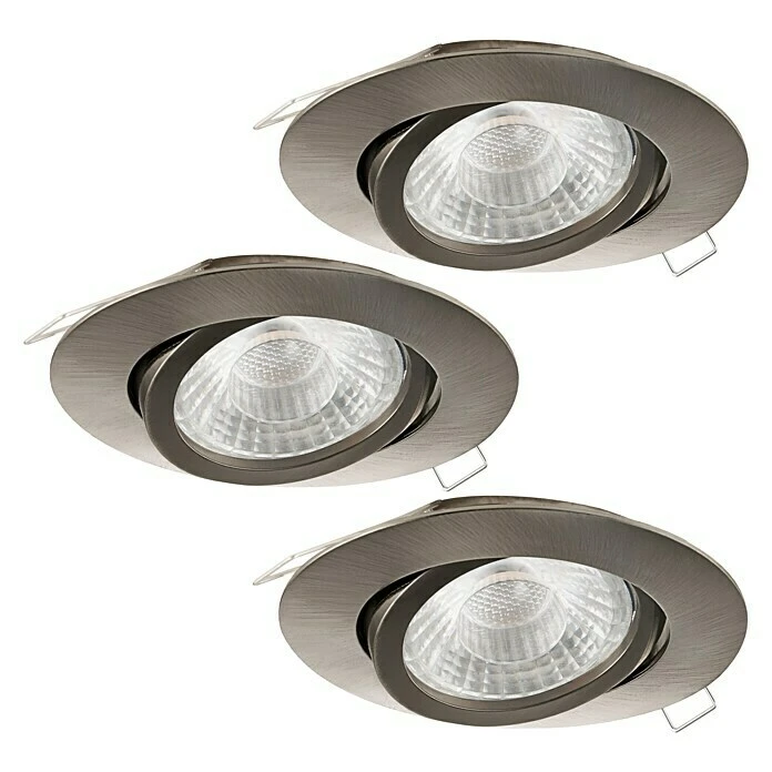 De set led-inbouwverlichting van Eglo bestaat uit drie spots die in plafonds, wanden en meubels kunnen worden ingebouwd. De inbouwspots vallen vooral op door de lichtbronnen die in drie stappen dimbaar zijn. De helderheid van de verlichting kan met de schakelaar op 100, 50 of 25 procent worden ingesteld. Daardoor is dus ook dimmen zonder dimmer mogelijk. De inbouwspots hebben een klassiek design, waardoor ze perfect in elke ruimte passen. De led-lichtbronnen worden via de GU10-fitting voorzien van stroom en kunnen indien nodig ook worden vervangen door andere lichtbronnen, bijvoorbeeld leds met een andere lichtkleur. Dankzij de ledtechnologie kennen de inbouwspots een laag energieverbruik, waardoor ze ideaal zijn voor intensief gebruikte ruimtes. Bovendien valt de lichtbron ook op door de lange levensduur.