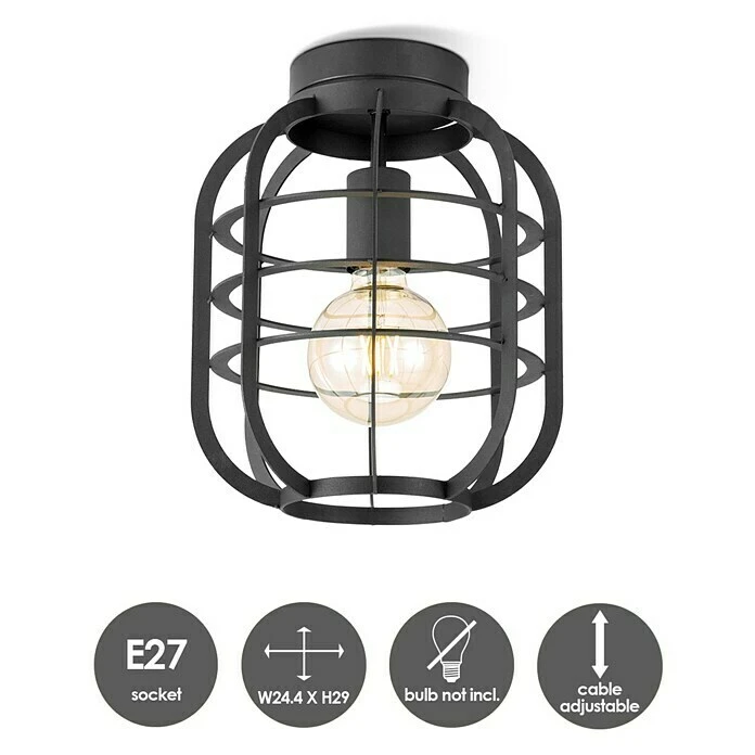 De plafondlamp Nero van Home Swee Home overtuigt met haar moderne design, dat een blikvanger wordt in elke woonkamer. Dankzij de klassieke E27 fitting beschikt u over een grote keuze aan compatibele lichtbronnen. Door de keuze van de lichtbron kunt u de lichtkleur en de lichtsterkte vrij vormgeven volgens uw wensen en behoeften. Aangezien het ontwerp van de armatuur een duidelijk zicht op de lamp biedt, is ook het gebruik van een decoratieve lamp denkbaar.