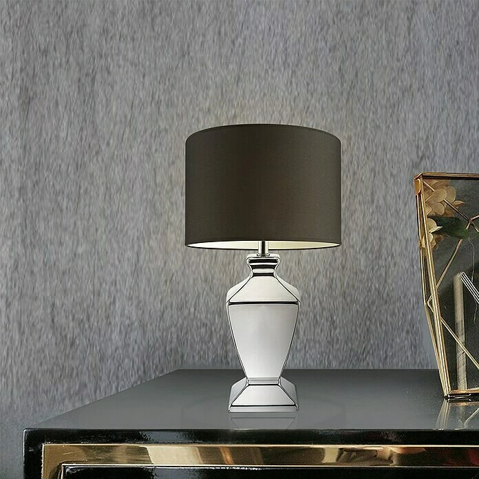 De 1-lamps lampvoet Home Sweet Home Class valt in vele woonruimtes op door zijn buitengewone look en het glanzende chroom. Hij kan worden gecombineerd met bijpassende lampenkappen met een maximale diameter van 20 centimeter voor een individueel design. Met zijn klassieke E27 fitting is de lampvoet geschikt voor gloeilampen van de energie-efficiëntieklassen A++ tot E met een maximum van 40 watt. Zo kunnen helderheid en uitstraling naar wens worden beïnvloed door de keuze van de lichtbron. De lampvoet kan gemakkelijk worden in- en uitgeschakeld met de ingebouwde schakelaar.