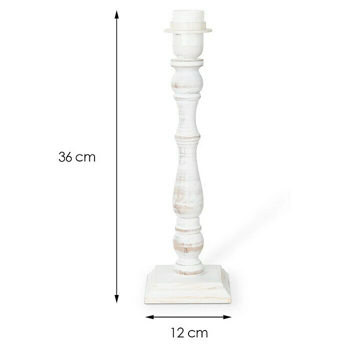 De Home Sweet Home lampvoet Woodi overtuigt door zijn chique vorm en kleur. Hij doet denken aan een kandelaar en creëert zo een elegante en romantische sfeer. Door zijn vorm en de witte kleur wordt de lampvoet een eenvoudig decoratief element in vintage look op vele tafels. De lampvoet kan worden gecombineerd met bijpassende lampenkappen met een maximale diameter van 20 centimeter voor een individueel ontwerp. Een andere mogelijkheid is het gebruik van een optische lichtbron, die een groot contrast kan creëren. Met de 1,80 meter lange kabel is verplaatsen binnen deze radius zonder problemen mogelijk. Hij is geschikt voor lampen met een E27 fitting en een maximum van 40 watt. Zo kunnen helderheid en uitstraling naar wens worden beïnvloed door de keuze van de lichtbron. Bovendien kan de lamp gemakkelijk met een schakelaar worden in- en uitgeschakeld.