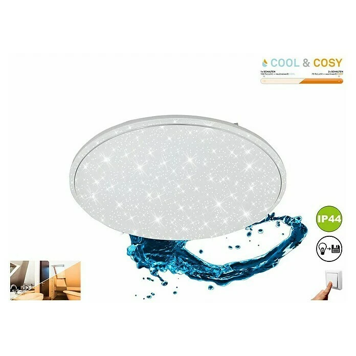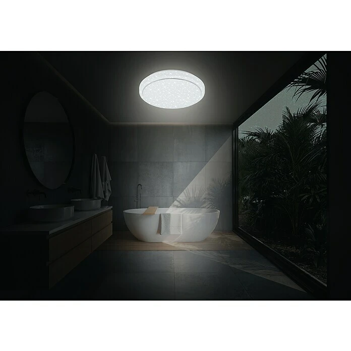 De LED plafondlamp Rent brengt met een druk op de knop de juiste sfeer in je bijvoorbeeld de badkamer. Schakelen tussen daglicht en warm wit licht in slechts een druk op de knop. De ingebouwde LED lamp heeft een vermogen van 12 watt en 1.200 lumen. Met een lichttemperatuurinstelling van 4.000 Kelvin op 100% en 2.700 Kelvin op 75% schijnt de plafondlamp altijd in het licht dat bij jou past. De armatuur is door de beschermingsgraad IP44 spatwaterdicht en heeft een lange levensduur van 20.000 uur. De afmetingen van de lamp zijn 280x85mm (DxH). Dit product bevat een lichtbron van energie-efficiëntieklasse F.