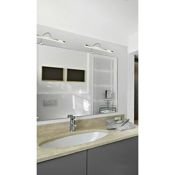LED spiegellamp Rahat brengt met een druk op de knop de juiste sfeer in je badkamer. Schakelen tussen daglicht en warm wit licht is slechts een druk op de knop verwijderd. Daarnaast is de armatuur dimbaar. Met een lichttemperatuurinstelling van 4.000 Kelvin op 100% en 2.700 Kelvin op 75% schijnt de spiegellamp altijd in het licht dat bij jou past. De armatuur is door de beschermingsgraad IP44 spatwaterdicht en heeft een lange levensduur van 20.000 uur. Dit product bevat een lichtbron van energie-efficiëntieklasse F.