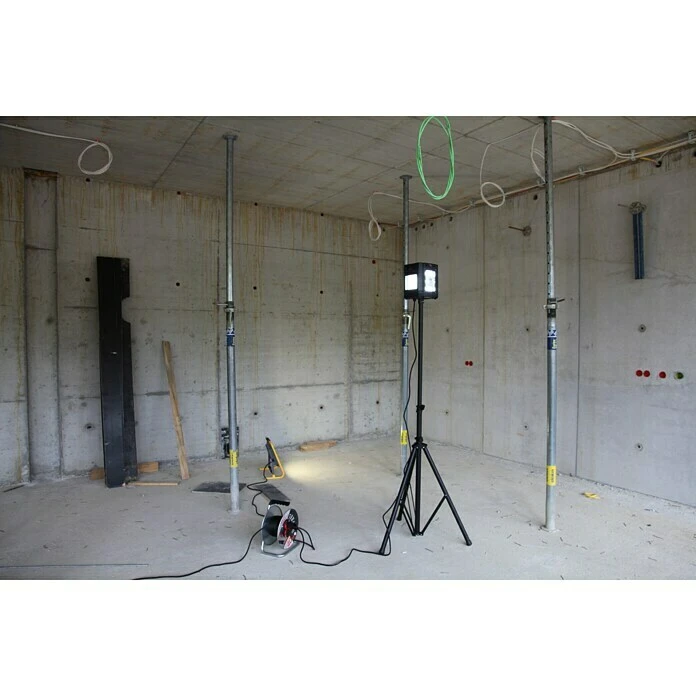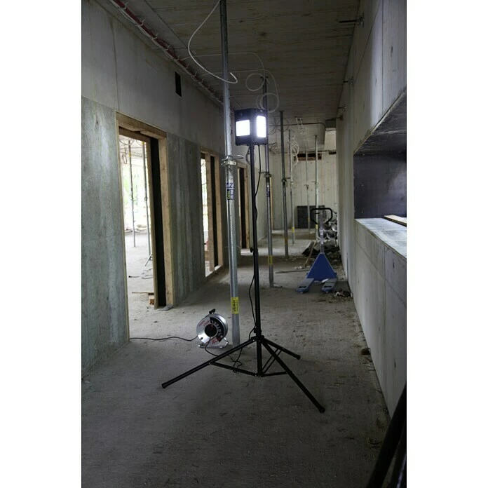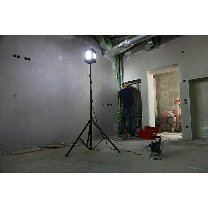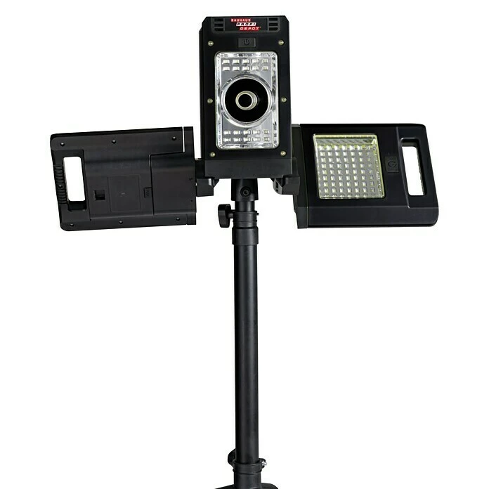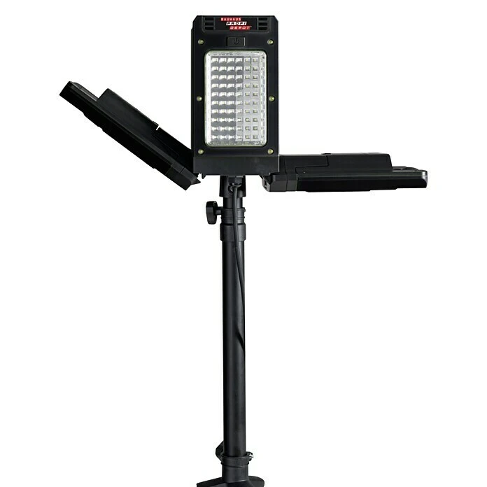 De Profi Depot led-straler is bedoeld voor bouwplaatsen en is stof- en spatwaterdicht (voldoet aan de eisen van beschermingsklasse IP54). Van de 4 lichtmodules zijn er 2 draai- en afneembaar, met geïntegreerde accu. De vast ingebouwde ledlampen met een lichtsterkte van 8.000 lumen geven helder, daglichtwit licht, waarbij je uitstekend kunt werken. Het stalen statief is in hoogte verstelbaar tot maximaal 2,25 meter. De lampkoppen zijn gemaakt van gegoten aluminium en kunststof.