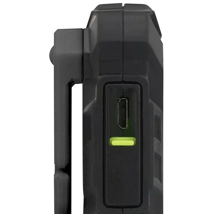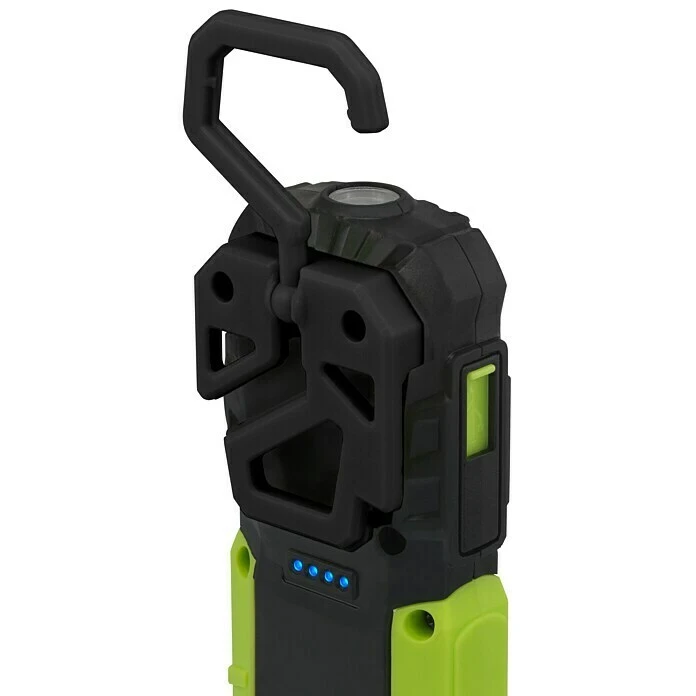 De Profi Depot led-zaklamp is een functionele lamp met een modern design in groen en zwart. Een magneet aan de onderkant van de lamp houdt de lamp stevig op zijn plaats en dat is handig als je de lamp als straler gebruikt of bij het opladen van de batterij. Daarnaast is deze zaklamp voorzien van een riemhouder en een haak voor bevestiging. Met behulp van de meegeleverde USB-kabel is de oplaadbare batterij binnen 2 uur volledig opgeladen. De vast ingebouwde, energiebesparende ledlamp die je met de ingebouwde schakelaar kunt bedienen, geeft neutraal wit licht dat je op een sterkte tussen 50% en 100% kunt instellen. Dankzij de beweegbare standaard kun je de lichthoek zeer flexibel en volledig naar wens instellen.