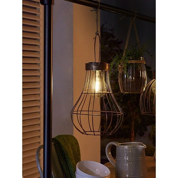 De metalen draadlamp Manchester van Luxform is ideaal om extra sfeer te creëren rond de tuintafel. Deze lamp van metaal heeft een echte glazen lamp met 2x warm witte filament LED’s en geeft een gezellige sfeer in de avond. Het handvat maakt het gemakkelijk om de lamp ergens anders neer te zetten of te hangen. Ook kan de Manchester opgehangen worden aan bijvoorbeeld een pergola. Solar verlichting van Luxform Lighting is de snelste, veiligste en gemakkelijkste manier om ’s avonds sfeer in uw tuin te brengen. Elke lamp bevat een ingenieus ontworpen zonnepaneel dat zonlicht omzet in elektrische energie. Deze energie wordt opgeslagen in een oplaadbare batterij, die ’s avonds zorgt voor de benodigde energie. Tip: Plaats de lamp overdag op een zonnige plaats, zodat de batterij optimaal geladen kan worden.