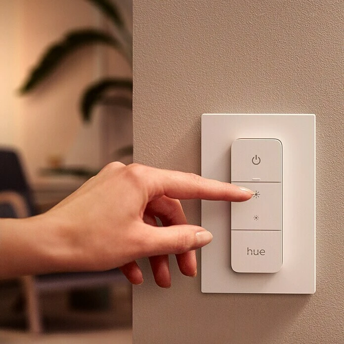 Regel en dim het licht in de kamer, schakel tussen lichtscènes of gebruik het beste licht voor het tijdstip van de dag. De Philips Hue Dimcontroller kan aan muren of magnetische oppervlakken worden bevestigd. Of je gebruik hem overal in huis als afstandsbediening.