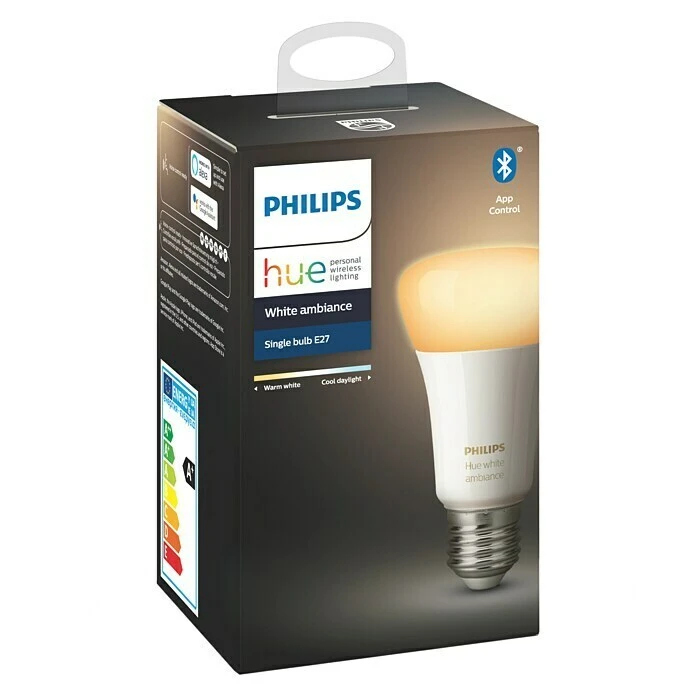 De Philips Hue White Ambiance lamp is geschikt voor lichtbronnen met E27-fitting die je wilt uitrusten met slimme lichtbesturing. De lamp is compatibel met de Hue-technologie; de kleurtemperatuur is in te stellen tussen warmwit en daglicht en de helderheid is ook aanpasbaar. Je kunt het licht dus aanpassen aan elke situatie. Om de lampen uit de Hue-serie met de bijbehorende Hue App voor iOS of Android te bedienen via een smartphone, tablet, Amazon Alexa of Google Home, moet je de lampen aansluiten op de compatibele Philips Hue Bridge. Door de Bridge kun je de lampen bedienen als je thuis of onderweg bent en je kunt kiezen uit vele lichtbesturingen. Geheel naar wens kun je met de Hue Philips-technologie timers, meldingen, alarmen, aan/uit-tijden en nog veel meer programmeren.