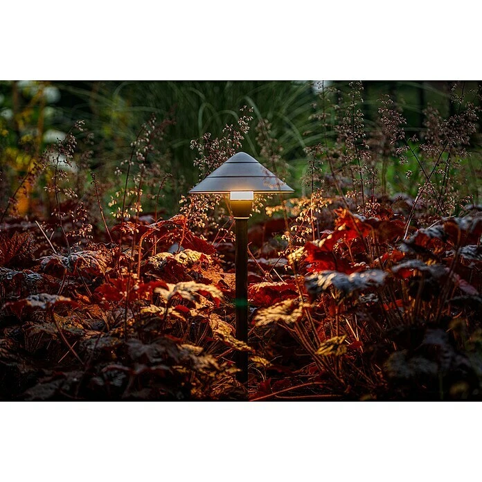 Deze unieke staande lamp past in elke soort tuin. De kap over de lichtbron zorgt er voor dat het licht rondom naar beneden schijnt en daardoor een mooi lichtbeeld creëert.De Ceto is zwart van kleur en past in elke tuin. Plaats de Ceto langs het tuinpad of de oprit voor een beter zicht of juist in de border tussen lage beplanting. De Ceto verlicht de planten en bloemen dan van boven. Deze staande lamp heeft een SMD led lichtbron met een verbruik van 2W die zorgt voor een warm wit licht.