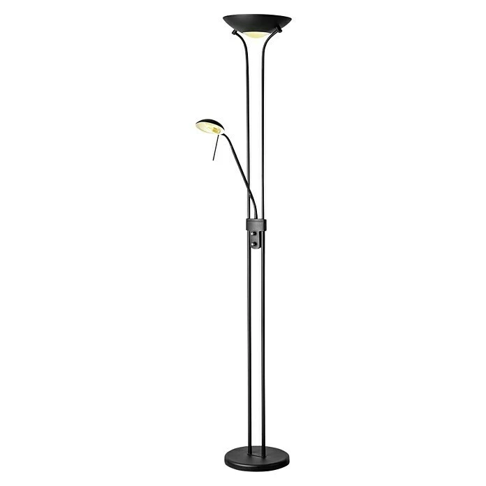 Deze multifunctionele LED vloerlamp, ook wel Uplighter genoemd, is een mooie en praktische toevoeging aan je interieur. De zwarte vloerlamp is geheel vervaardigd uit geborsteld zwartkleurig staal wat de lamp een moderne uitstraling geeft. Vloerlamp LED Uplight is voorzien van een uplighter aan de bovenkant en een leeslamp in het midden van het staframe. De uplighter zorgt voor een warmwitte, sfeervolle indirecte lichtverspreiding met daarbij extra licht aan de onderzijde van de kom. De leeslamp bevindt zich op een verstelbare arm zodat je op elk moment een tijdschrift of boek kunt lezen bij je bank of fauteuil. De Uplighter is inclusief R7S 8W LED + G9 3W LED licht. Alle verlichting in de lamp is LED en dus energiezuinig, goed voor het milieu en je portemonnee! De bovenlamp bij deze zwarte vloerlamp LED Uplight is dimbaar via de draaiknop op het armatuur. De leeslamp is niet dimbaar. Uplighter en de leeslamp kun je afzonderlijk van elkaar gebruiken, zodat je de ideale ambiance altijd in huis hebt! De LED uplighter is 180 cm hoog, 50 cm breed en heeft een 250 cm snoer. De staande lamp is van betrouwbare kwaliteit (DEKRA keurmerk) en eenvoudig zelf te monteren.