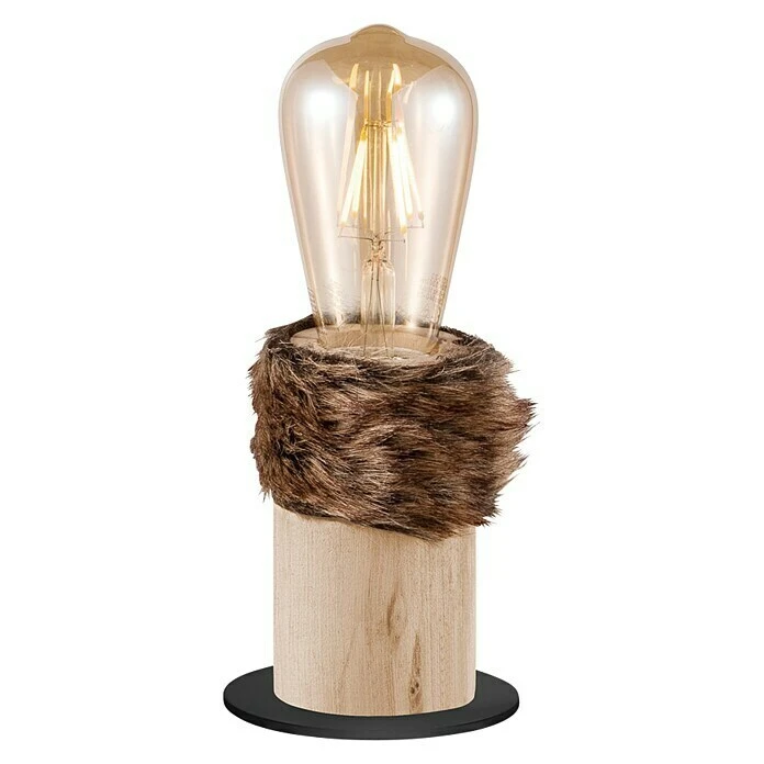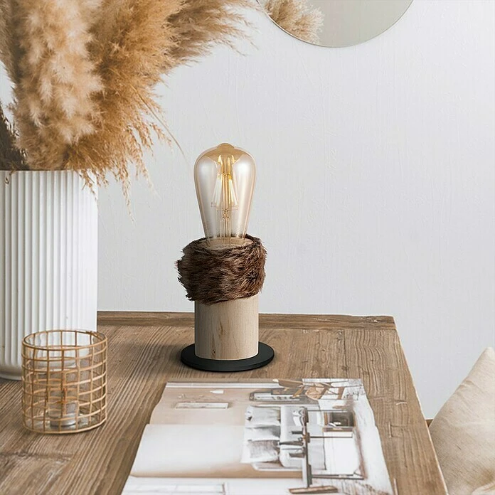 De Home Sweet Home tafellamp Furdy overtuigt door het eenvoudige design en de veelzijdige toepassingsmogelijkheden. De lamp is gemaakt van hout en metaal. Een krans is van kunstbont fungeert als een bijzondere visuele blikvanger. Bovendien komen decoratieve gloeilampen door de open vormgeving van de armatuur optimaal tot hun recht. De lamp heeft een E27 fitting en is geschikt voor gloeilampen tot maximaal 10 watt.