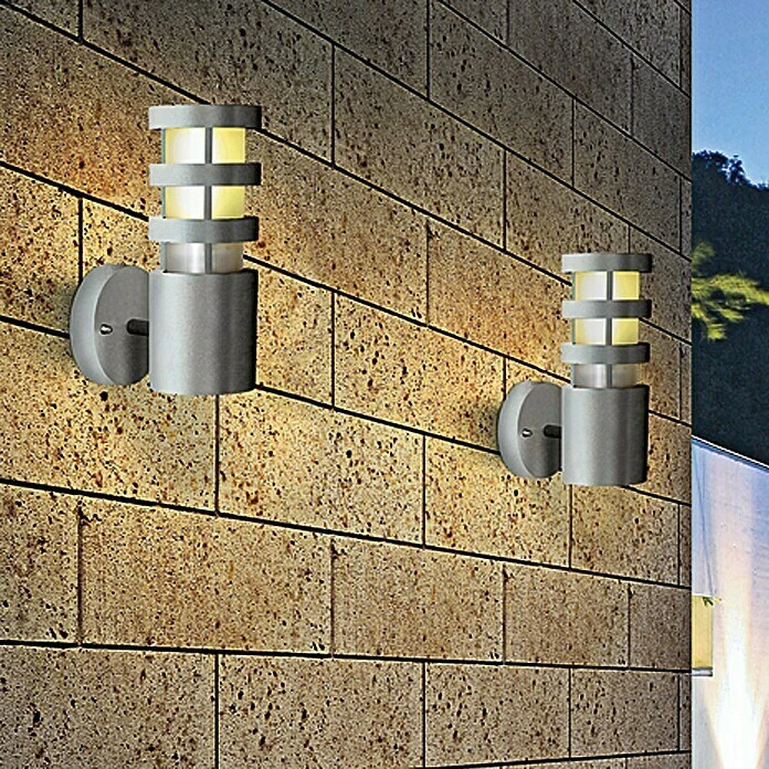 De moderne Starlux wandlamp Amal is prachtig met zijn fraaie combinatie van geborsteld aluminium en gesatineerd glas. Het afgeronde front past zowel bij moderne als klassieke architectuur. Dankzij het royale glasoppervlak worden entrees van appartementen of huizen en tuinterrassen optimaal verlicht.